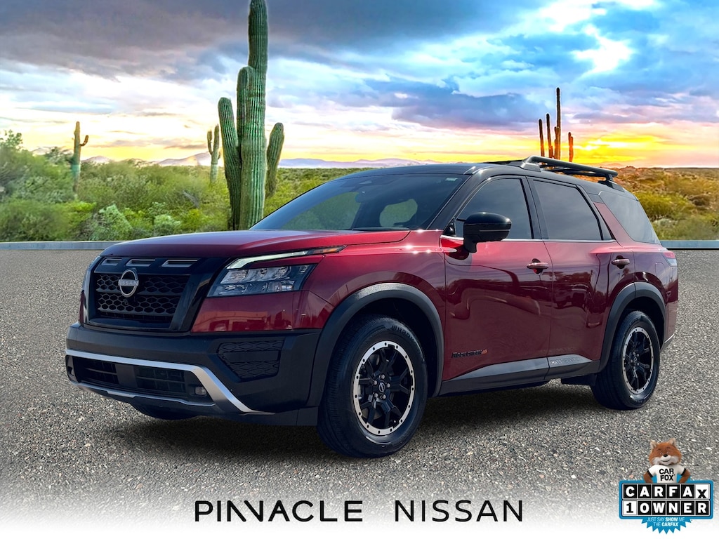 Proudly serving drivers throughout Scottsdale, Phoenix, Glendale, Avondale, Sun City, Cave Creek, Mesa, and Tempe. If you're searching for a Nissan Certified 2023 Nissan Pathfinder Rock Creek 4WD for sale in Scottsdale, this Scarlet Ember example is ready for its next adventure.