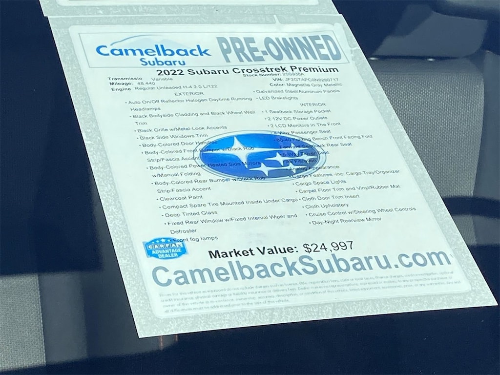 Discover the perfect blend of rugged capability and refined comfort with the 2022 Subaru Crosstrek Premium. Designed for those who crave adventure without compromising on style, this sport utility vehicle stands out with its Magnetite Gray Metallic exterior that exudes sophistication. Beneath its sleek design lies a robust 2.0L 4-Cylinder DOHC 16V engine paired with a Lineartronic CVT, ensuring a smooth and responsive drive whether you're navigating city streets or tackling off-road trails. The Crosstrek's impressive ground clearance and Symmetrical All-Wheel Drive offer exceptional stability and control, making it an ideal choice for those who love to explore. Inside, the Crosstrek Premium offers a spacious and thoughtfully designed cabin, providing ample room for gear and passengers alike. With its advanced safety features, including Subaru's renowned EyeSight Driver Assist Technology, you can drive with peace of mind knowing you're protected on every journey. Whether you're commuting to work or embarking on a weekend getaway, the 2022 Subaru Crosstrek Premium is equipped to handle it all, offering versatility and reliability in every mile.
